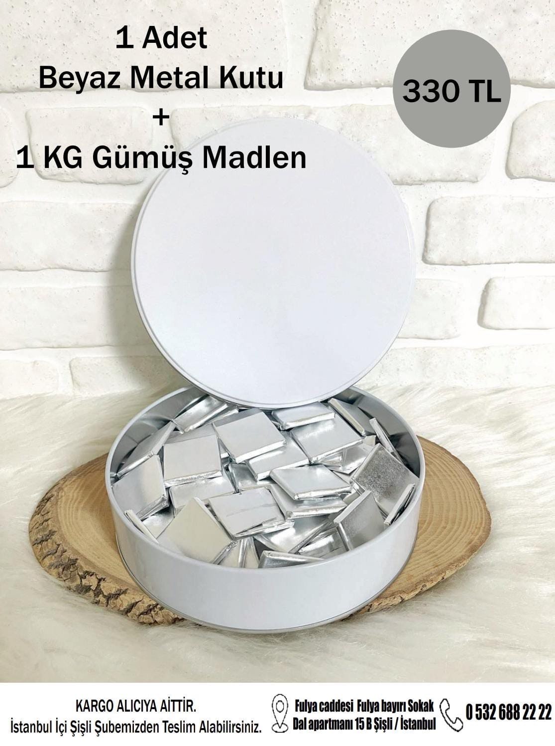 1 Adet Beyaz Metal Kutu + 1 KG Gümüş Madlen