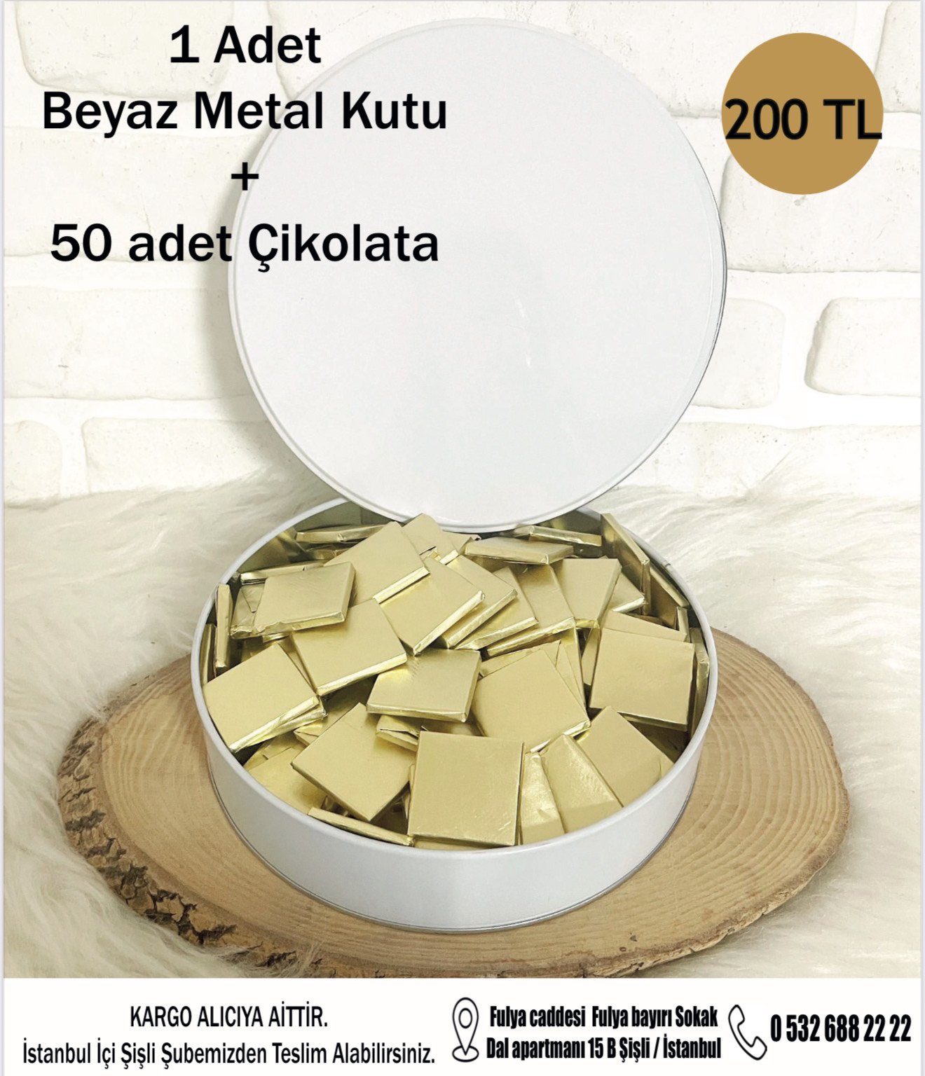 1 Adet Beyaz Metal Kutu + 50 Adet Gold Madlen1 Adet Beyaz Metal Kutu + 50 Adet Gold Madlen
