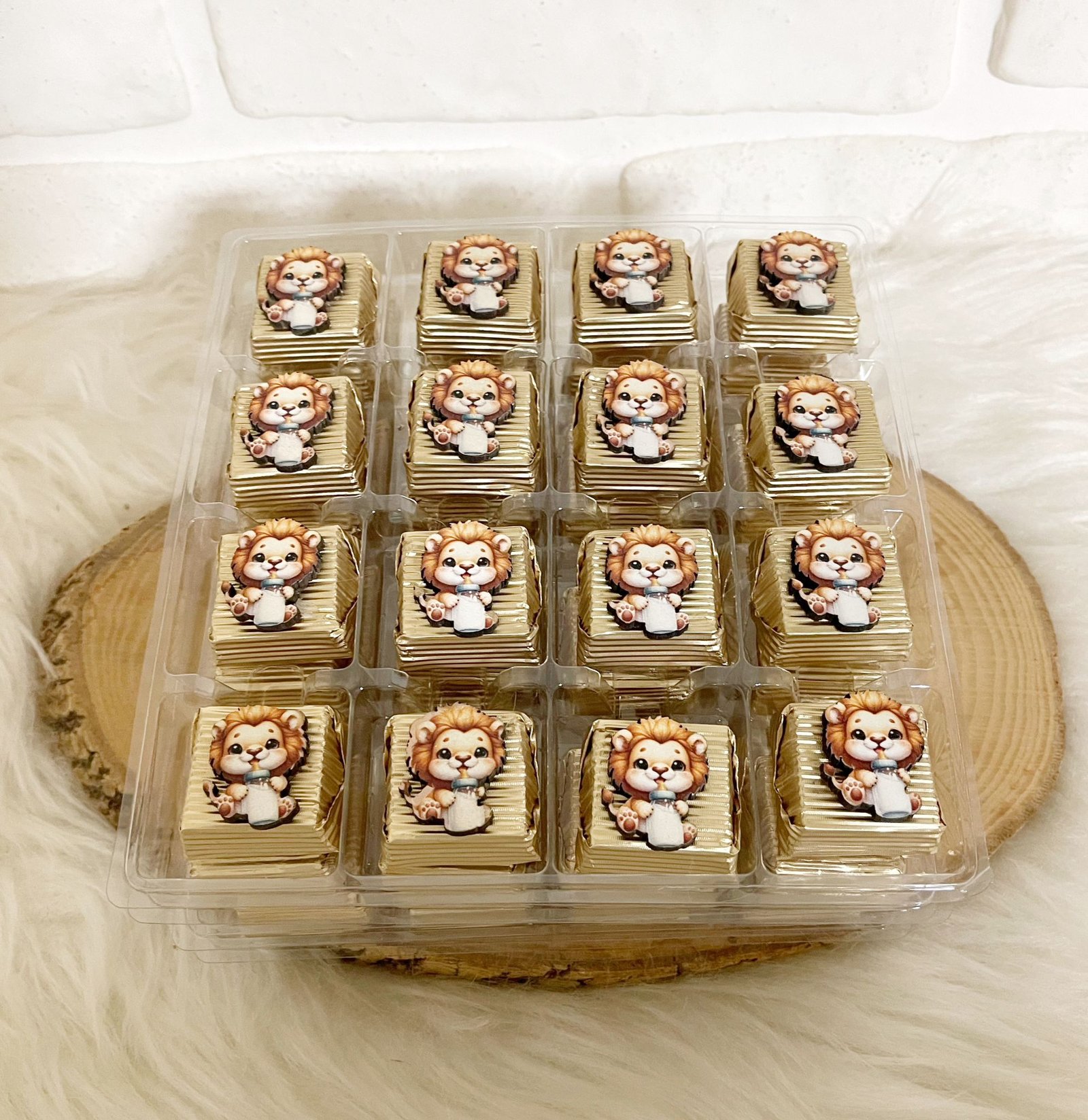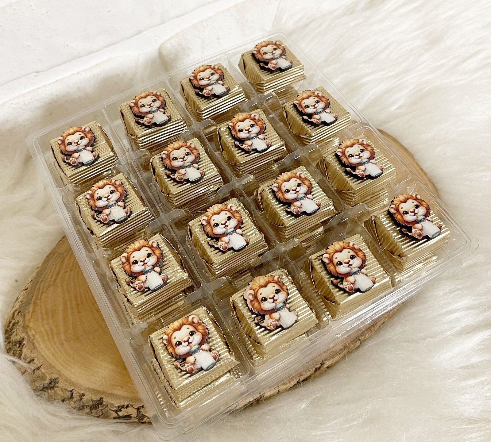 Biberonlu Yavru Aslan Figürlü Ahşap Dekorlu Gold Erkek Bebek Oluklu Kalın Madlen Çikolata