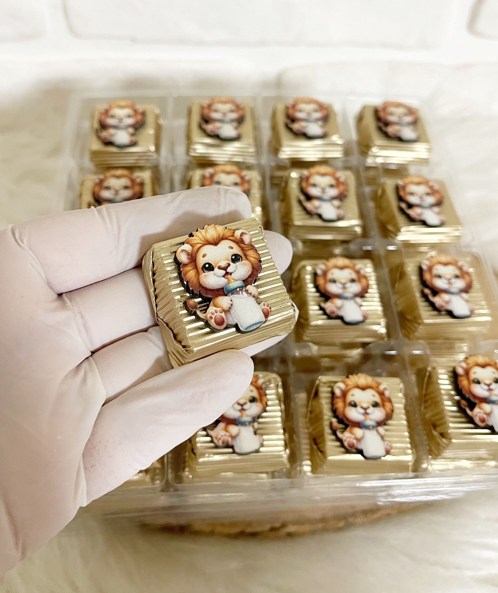 Biberonlu Yavru Aslan Figürlü Ahşap Dekorlu Gold Erkek Bebek Oluklu Kalın Madlen ÇikolataBiberonlu Yavru Aslan Figürlü Ahşap Dekorlu Gold Erkek Bebek Oluklu Kalın Madlen Çikolata