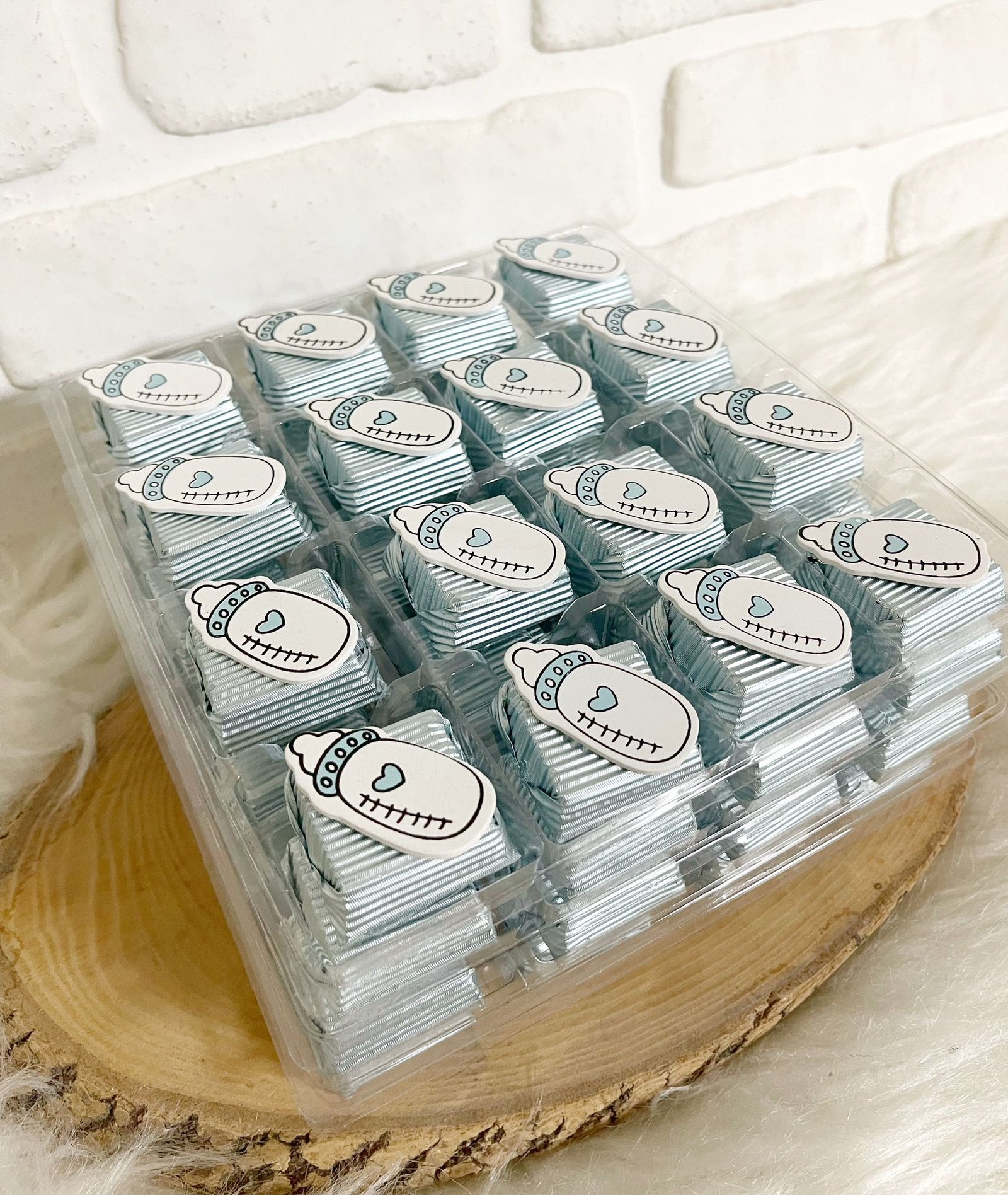 Mavi Kalpli Biberon Dekorlu Çikolata